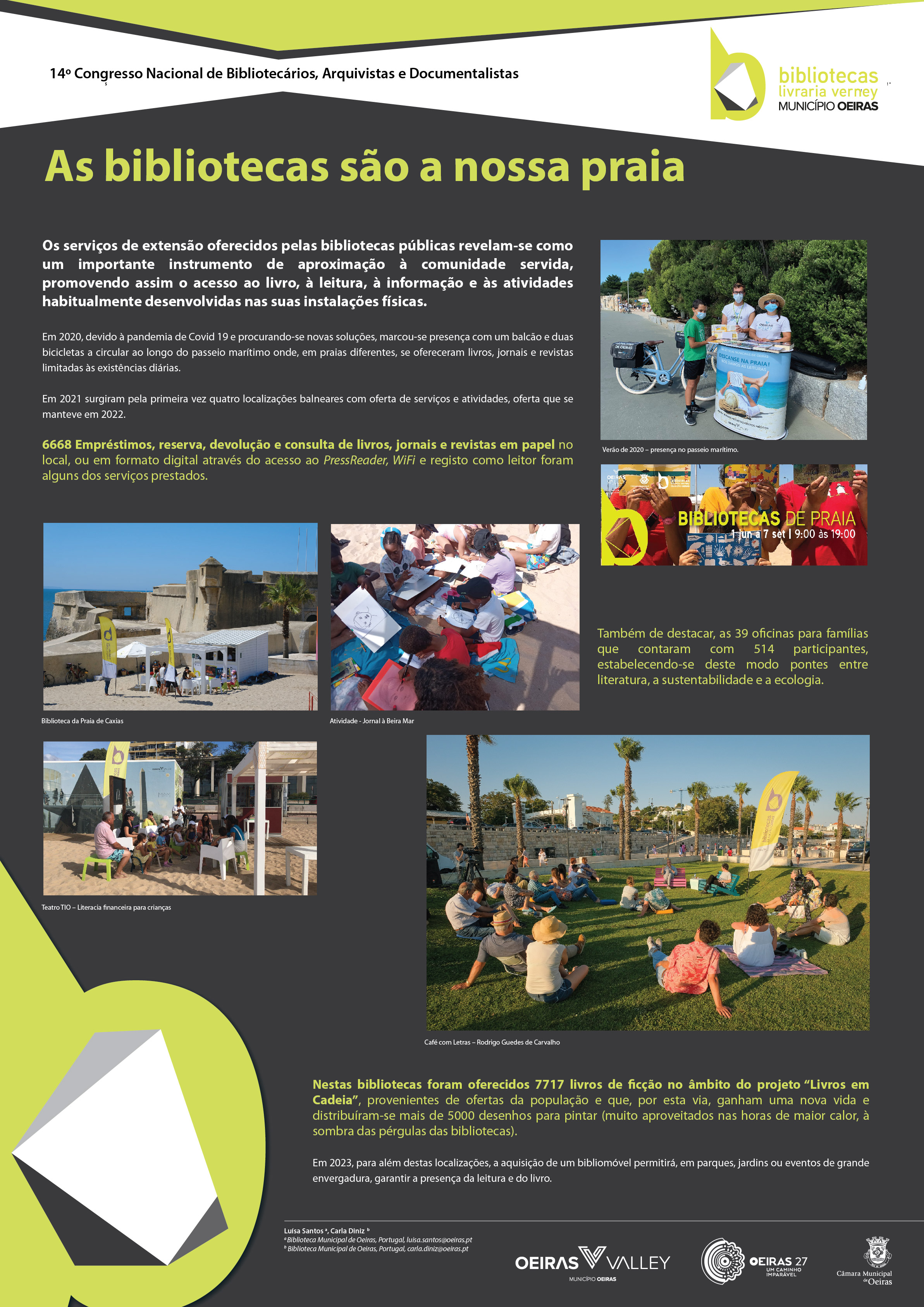 Durante noventa e oito dias as bibliotecas municipais prestaram serviços que oferecem nas três bibliotecas da rede (acesso a livros, revistas, jornais e atividades para a comunidade em geral). A biblioteca de praia assumiu-se com o ponto de encontro, onde foi possível conversar, ler, requisitar bibliografia, participar num evento ou simplesmente assistir a uma conversa sobre livros.